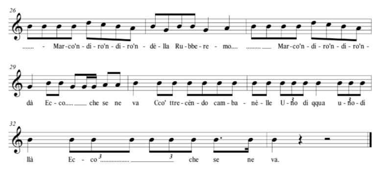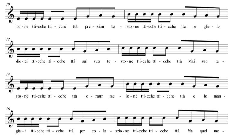 “Tu pecoraro dalla pecora bìcia chjappa tu mójje pe’ la camicia, falla ballà falla sardà, quésta è la vita de’ ppecorà.”, creanno l’ira di quelli pòri pastori.