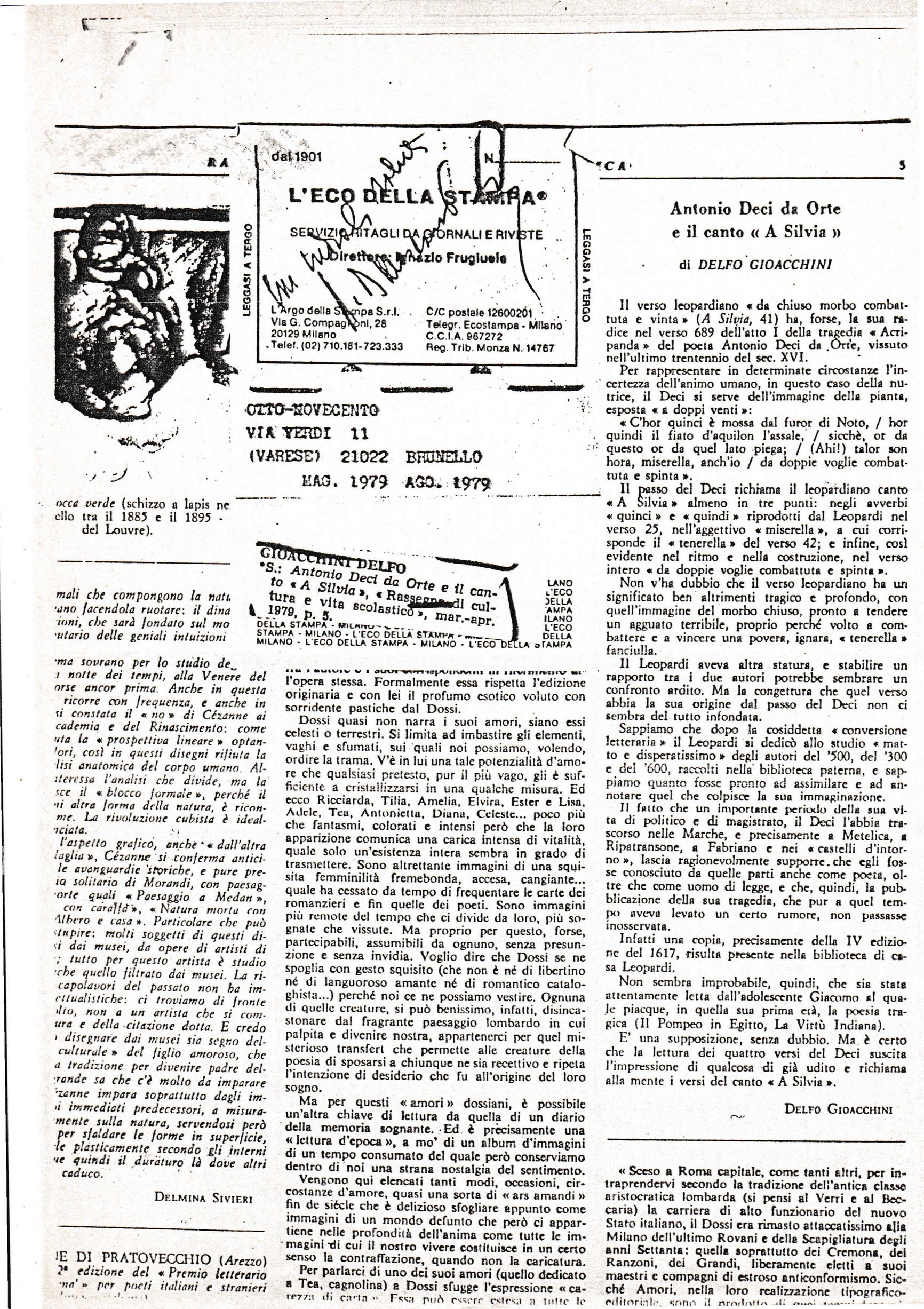 scoprite un cazzo che ve se frega.”(Carosi A.,, Un episodio del Risorgimento della Provincia di Viterbo, I disordini del 1849 nella città di Orte, l’arresto del padre gesuita Giampietro Secchi e la fuga del prelato Stefano Scerra, arcivescovo di Orope in partibus e segretario della Congregazione dell’Immunità Ecclesiastica, in Biblioteca e Società, Quaderni della rivista del consorzio per la gestione delle biblioteche comunale degli Ardenti e Provinciale Anselmo Anselmi di Viterbo, 1994 n°21; con variante anche in Gioacchini D., Curiosità ortane, Tipografia Menna 1961, Orte, p. 145.