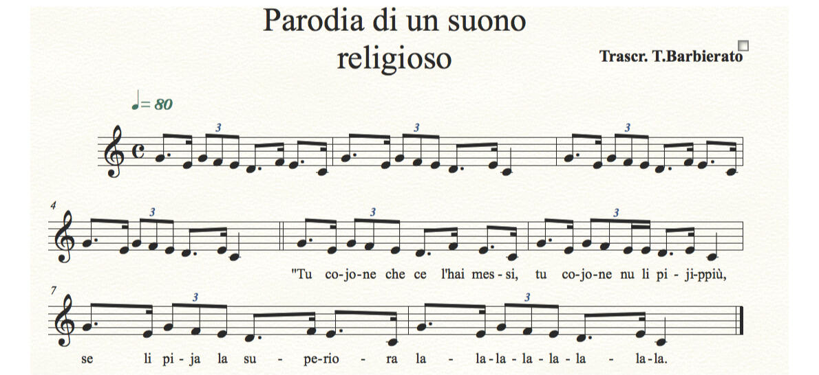 “Tu pecoraro dalla pecora bìcia chjappa tu mójje pe’ la camicia, falla ballà falla sardà, quésta è la vita de’ ppecorà.”, creanno l’ira di quelli pòri pastori.
